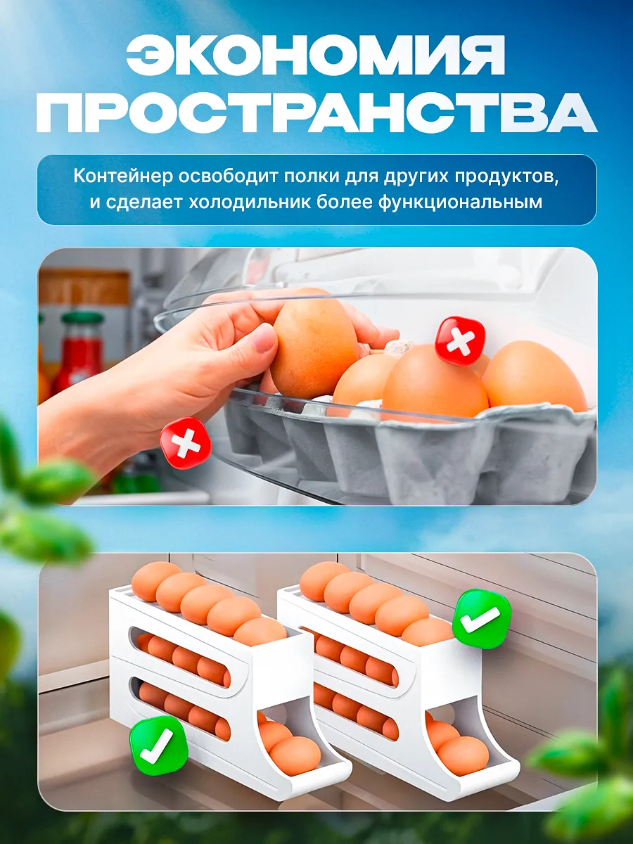 Подставка для яиц - это идеальное решение для любого холодильника, которое поможет вам организовать хранение яиц в удобном и безопасном формате. Изготовленная из высококачественного пластика, эта подставка не только надежна, но и гибкая, что позволяет легко адаптировать ее под различные размеры холодильных ящиков. .